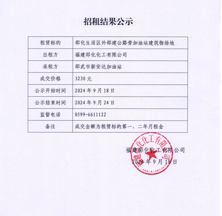 福建邵化工有限公司建筑物場(chǎng)地招租公告